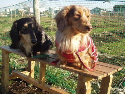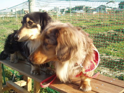 二人でベンチに座ってハイポーズです。(=^_^=)