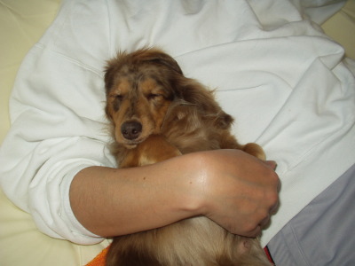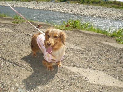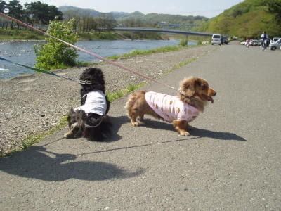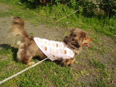 散歩の後は毛並みがいいので手入れも大変なんです。
