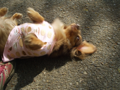 くるみが道でゴロンチョしている姿を冷静に見ている