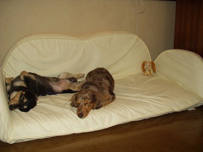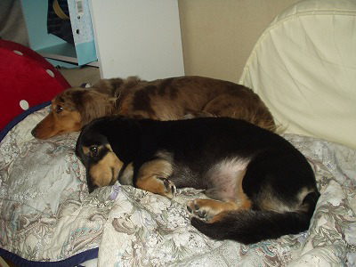 夜、8時、今日は二人とも疲れて寝てしまいました。