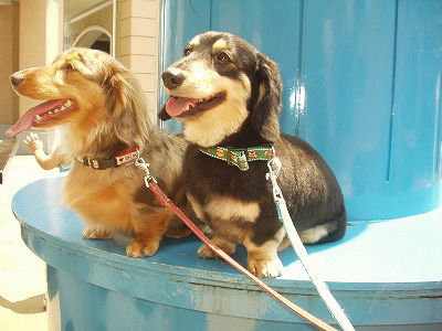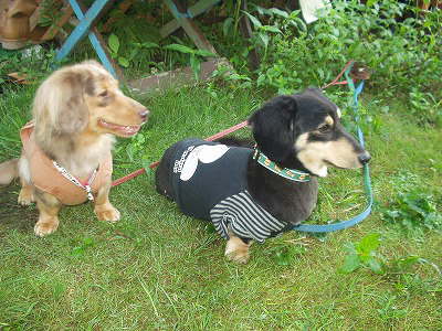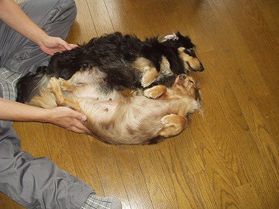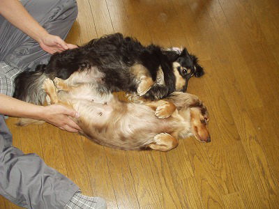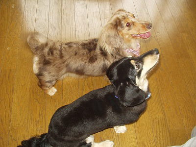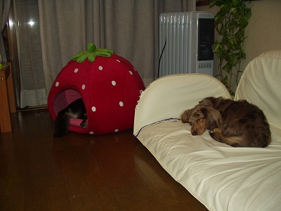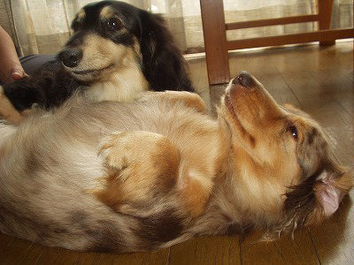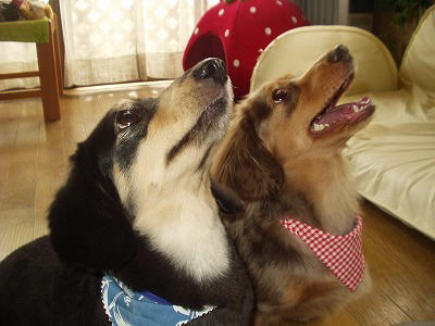 二人ともワンコ用くぐり戸から部屋に入る瞬間を