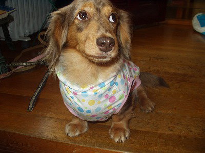 くるみはドレス風洋服を着てみました。