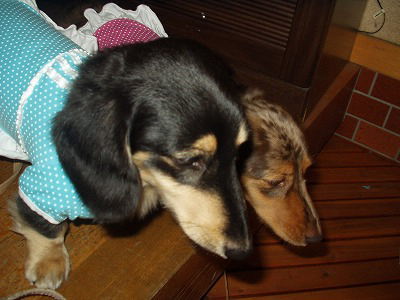二人でにおい嗅ぎの共同作業です。(^_^.) |