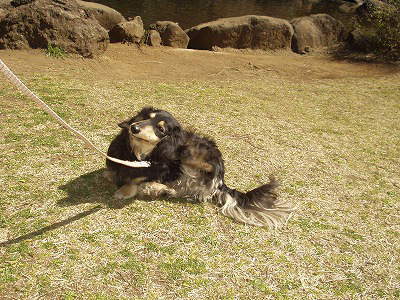 なんか言っていたら二人で土にゴロンチョしてしまって