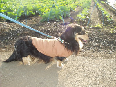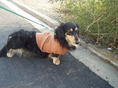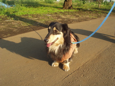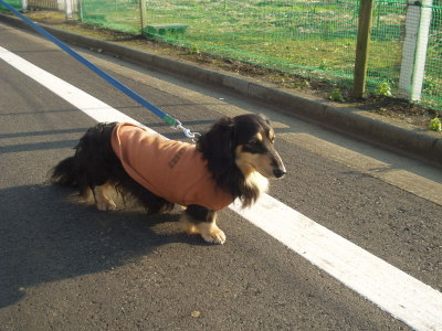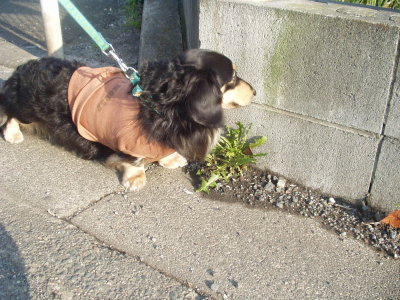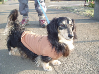 トレーナー着て散歩すると案外体が汚れずにすむんです。 |