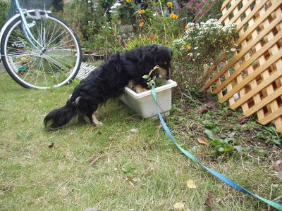 朝は、部屋の掃除などがあるのでアンディはお外で